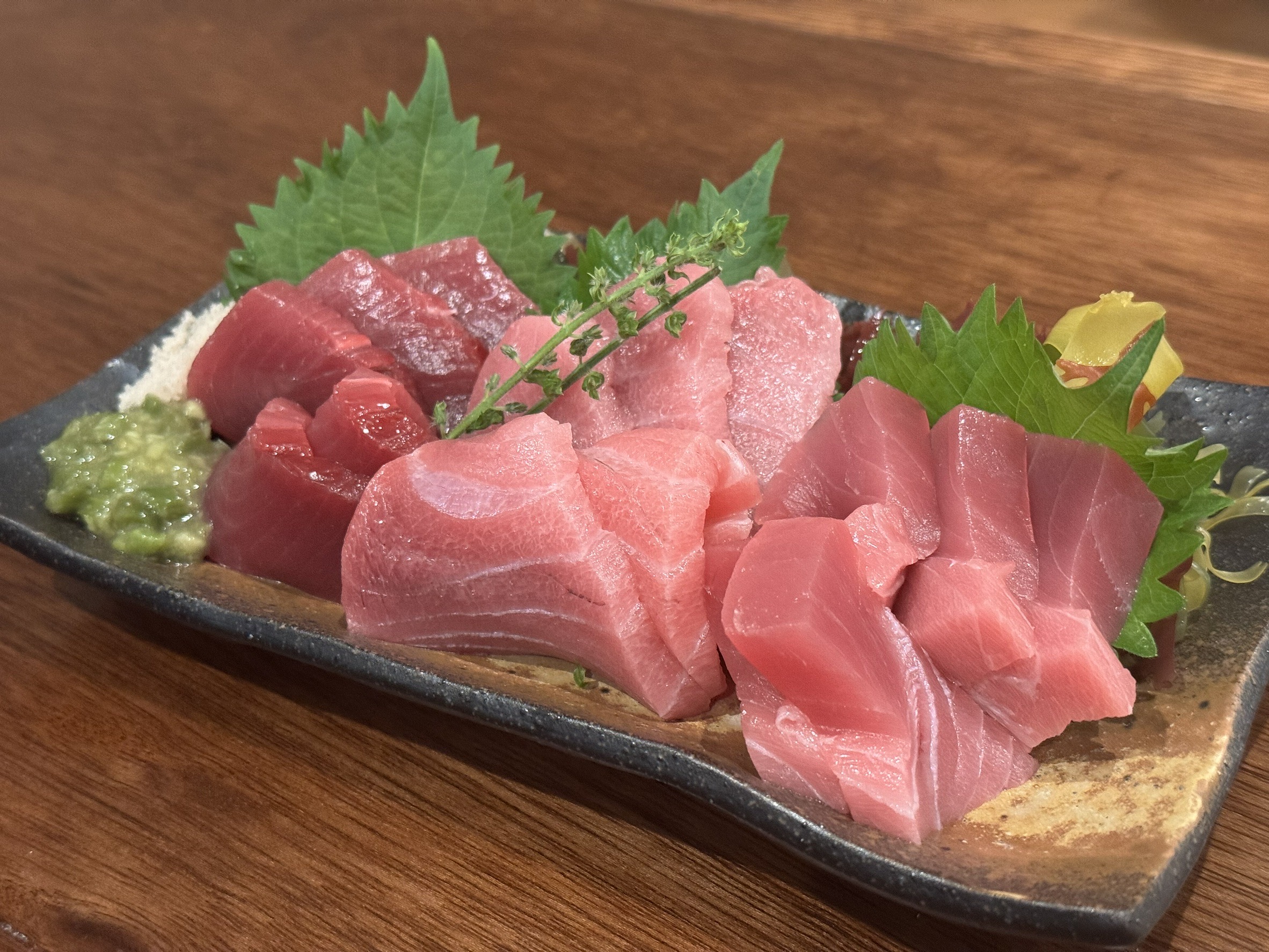 店主個人としては、”茎わさび”と”藻塩”で魚介を召し上がっていただくことでその鮮度の良さや素材の力強さを、